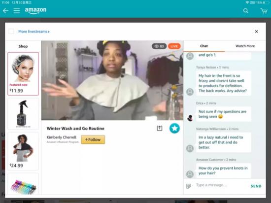 另一个难题是,海外直播带货的土壤并未完全成熟。在一场亚马逊的直播中,观众跟直播之间的互动,并未完全集中在商品本身,“你的刘海好卷”“你平时怎么打理头发”这种聚焦在主播身上的互动,并不鲜见,这或许也跟海外消费者的互动习惯和文化差异有关。