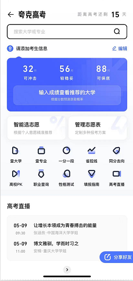 比如,夸克的“赤子心”高考AI服务,出了展示考生想要获取的高校、专业信息外,夸克还帮助考生预测高校的录取概率、高校间的对维度对比PK,夸克甚至还邀请高校到夸克直播间详解招生政策等。