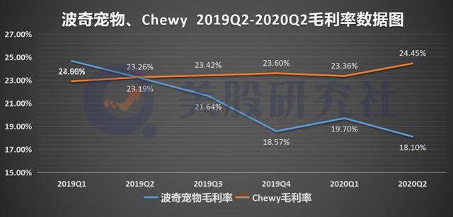 国内和海外对于宠物品牌选择方向的差异,使得国内波奇宠物和美国的Chewy在成本控制方面表现不一。2020年上半年,波奇的毛利率为18.2%,而同期Chewy毛利率为24.45%。