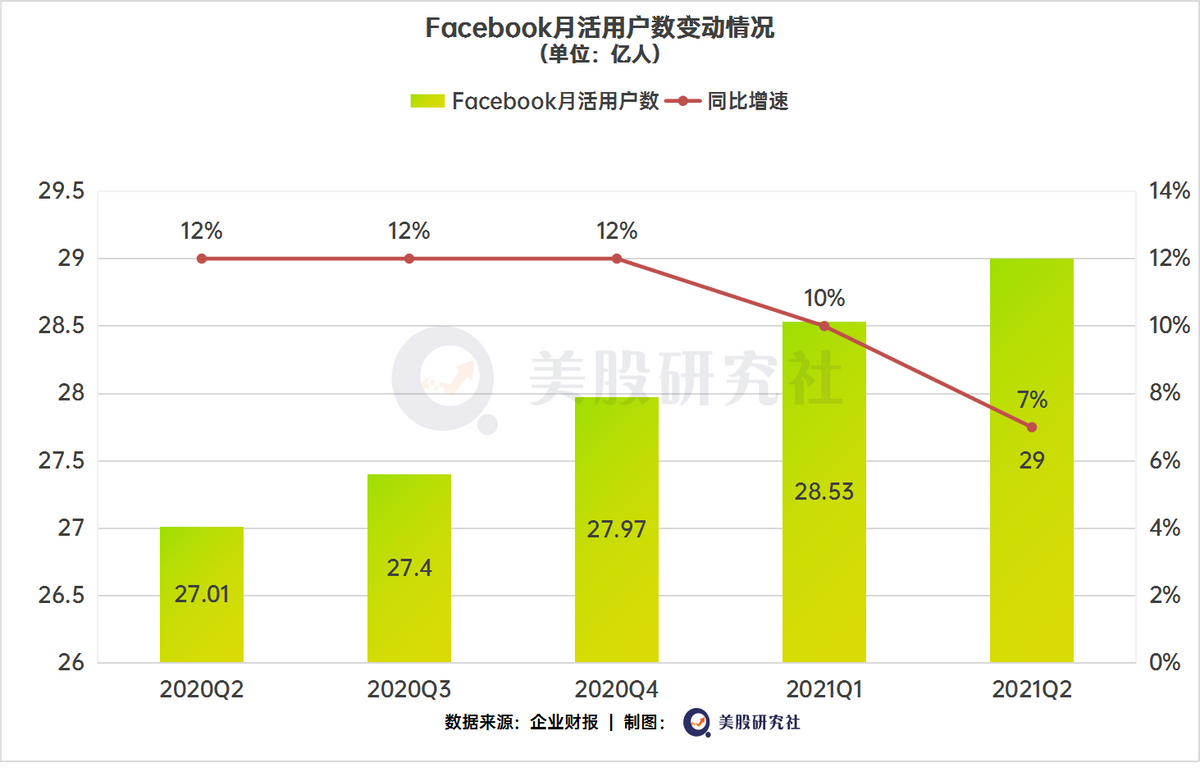 对社交媒体本行的Facebook来说,月活或许确实具有指导性作用。单看Facebook主应用,第二季度的月活为29亿人,比去年同期增长7%,高基数的情况下能取得这个成绩也不错,尽管增速略有放缓。