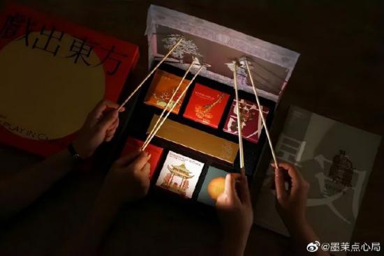 同样,在视觉风格上,墨茉点心局也对传统文化进行创新,来夯实自身的国潮定位。比如结合传统手艺皮影戏推出戏出东方系列月饼礼盒,按照二十四节气推出系列新品等等。