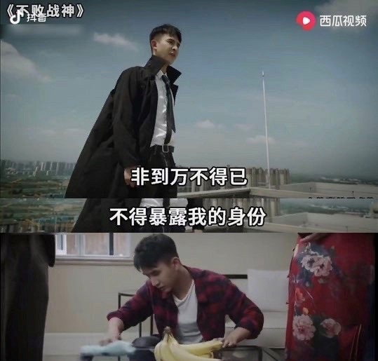管云鹏是将总裁式“邪魅一笑”发扬光大的典型代表,他在抖音上有一个颇为魔性的外号—歪嘴战神。之所以称为“战神”,起因于他主演了一系列赘婿广告。
